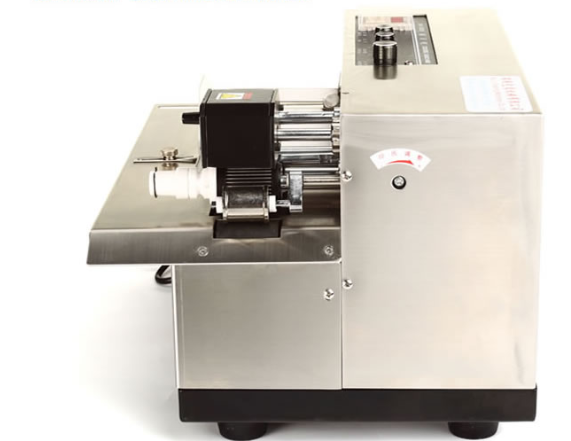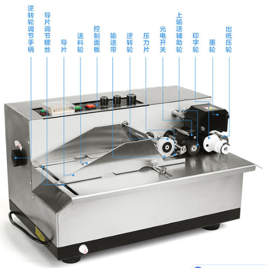 4、固体墨轮打码机是一种先进的接触式热打码机。本机采用间歇式自动加热和精密的机械相结合,可根据用户需要,任意选择打码内容与打码位置,并可设定打码的张数打码速度快,性能可靠,字迹清晰,打码动作及计数采用光电开关控制。