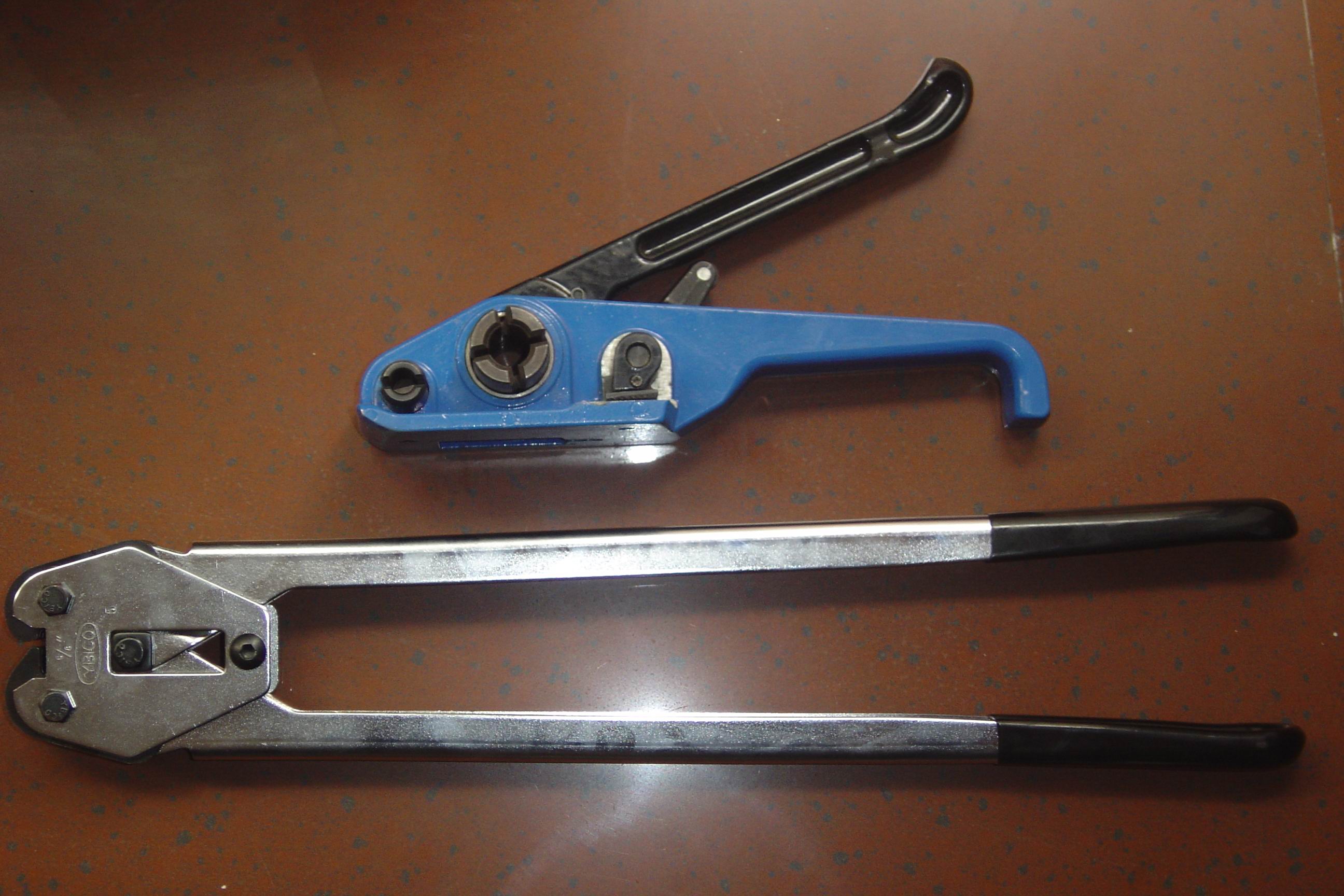 手动打包机配套打包扣使用,由收紧器和咬扣器组合而成为一套。收紧器可以在宽度12-19规格打包带之间通用,咬扣器则有三种型号:1606、1608、1908;至于具体使用哪种咬扣器主要是根据打包带的规格及打包扣的规格来选定的,例如1607打包带+1606打包扣,则建议使用1606咬扣器,1607打包带+1608打包扣,则建议使用1608钳子。现我司手动打包机的型号主要有T33和T66两种,故障率极低、轻便、价钱便宜、适合恶劣工作环境、对生产工人素质要求低,每次打带比钢带打包机节省带20cm。